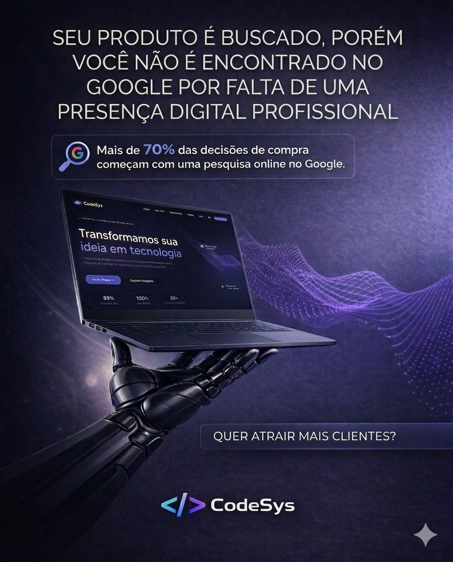 Clientes desconfiam de empresas sem presença digital profissional. Seu negócio perde autoridade.